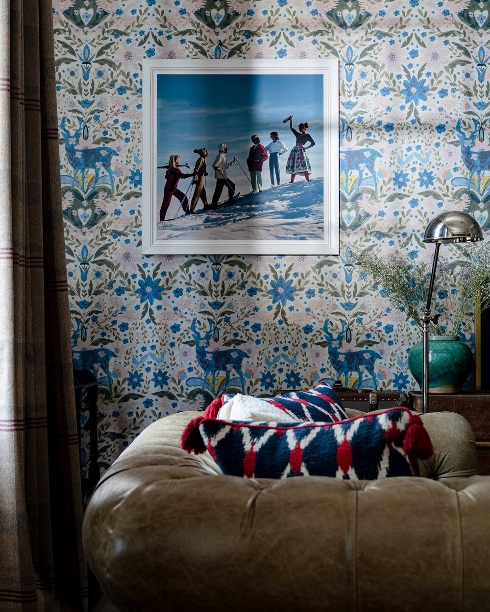 The Kelling Sofa in Putty Velvet with Navy Blue Piping | Decoralist