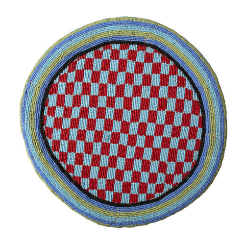 A traditional hand beaded stool from the Bamileke people of the Grasslands of Cameroon. Metal covered with cloth and embroidered by hand with glass beads.