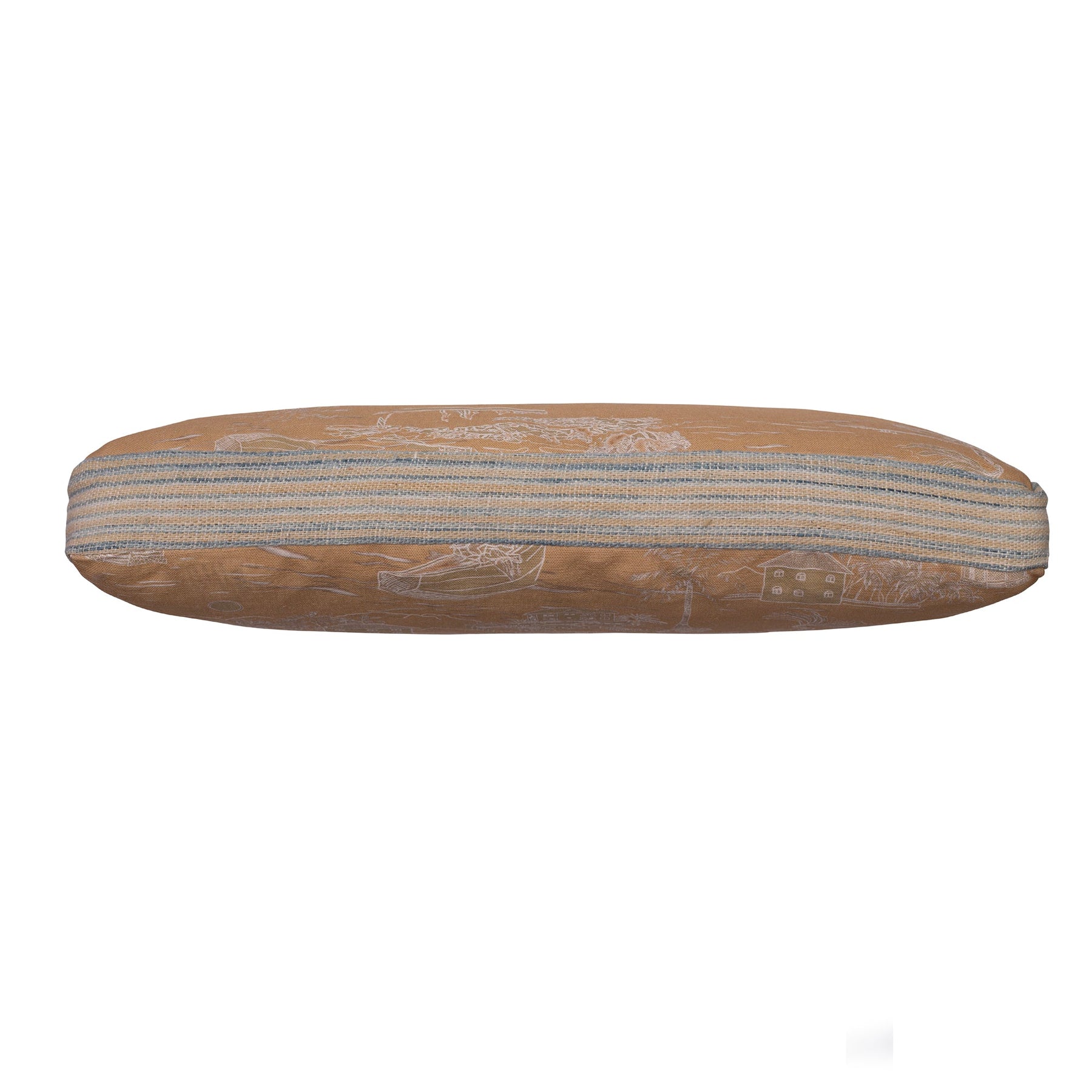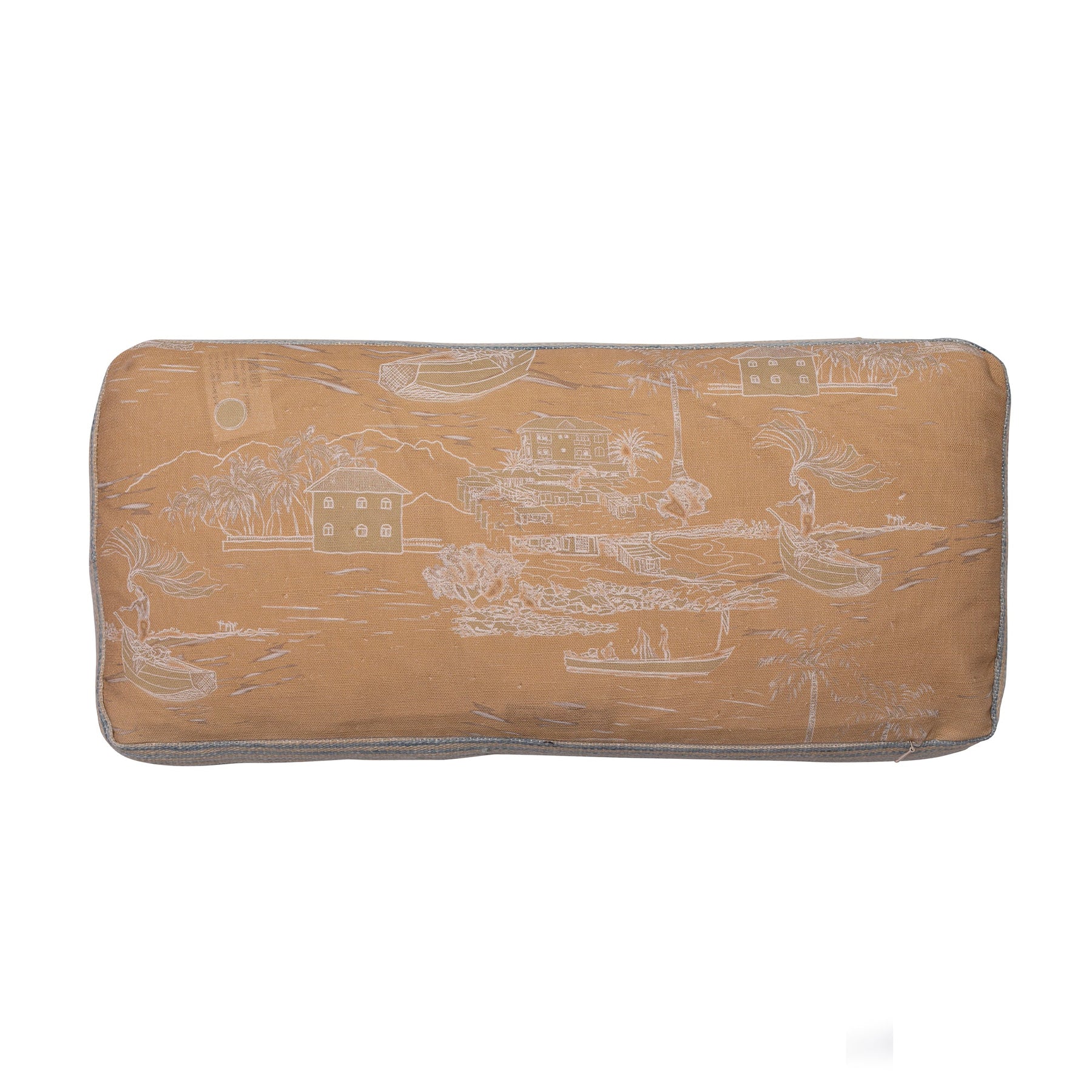From the Aberdeen Peninsula to scenes of fishermen launching their nets off the coast, our collection Banana Island is a toile pastiche of coastal life in Sierra Leone. Printed on Wexford Linen in the UK and bordered with country cloth hand woven in Sierra Leone.