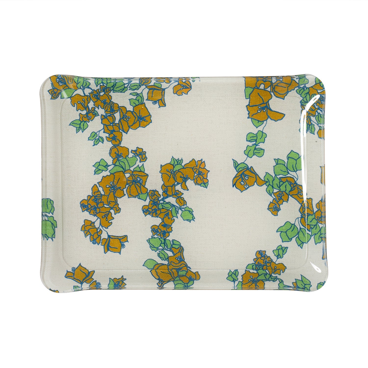 A very decorative acrylic tray made in France with Dar Leone's own range of textiles. Available in three tones of Coral Orange, Saffron Yellow and Oyster White.