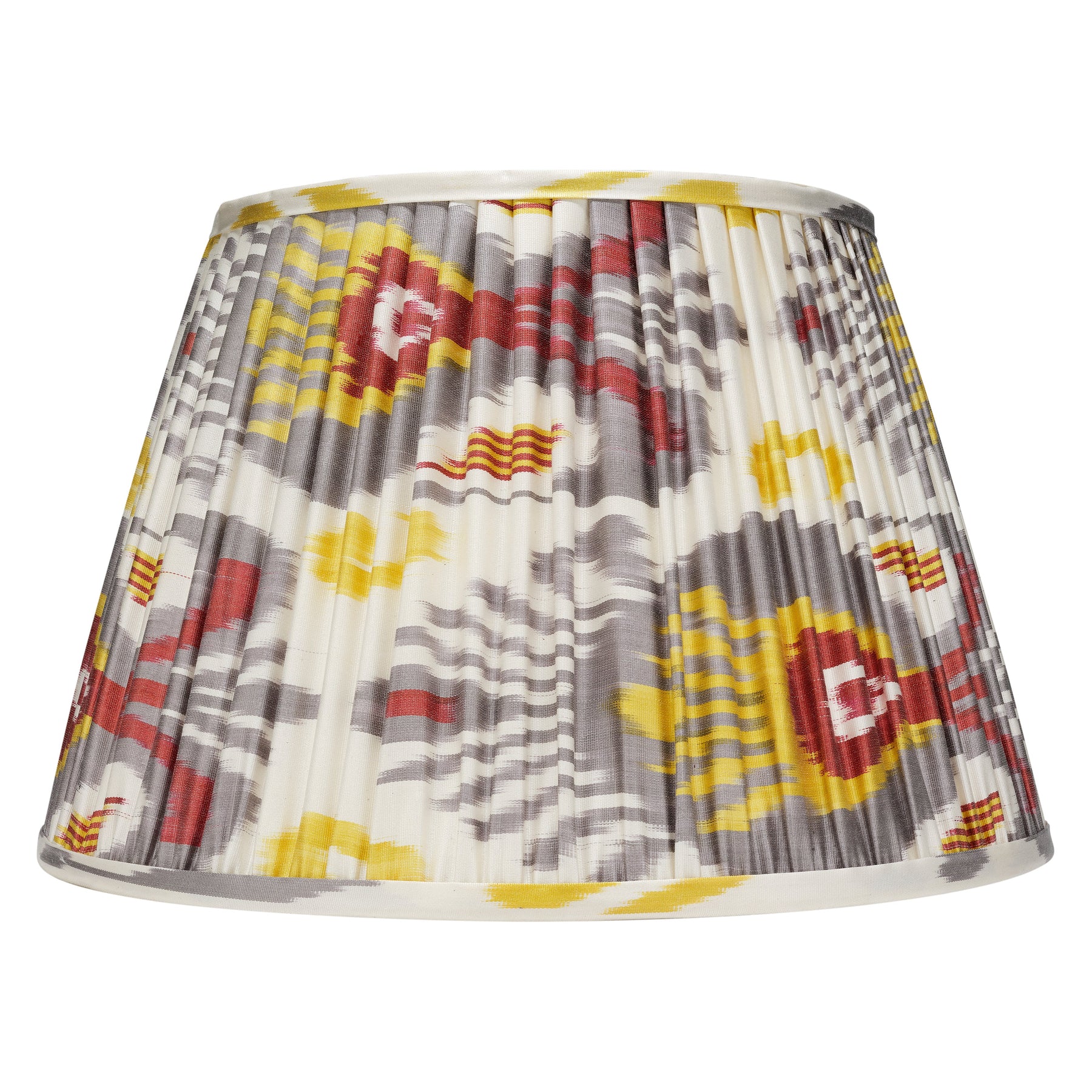 Each lampshade is made to an impeccable quality, using cotton ikat that is handwoven on traditional looms.
