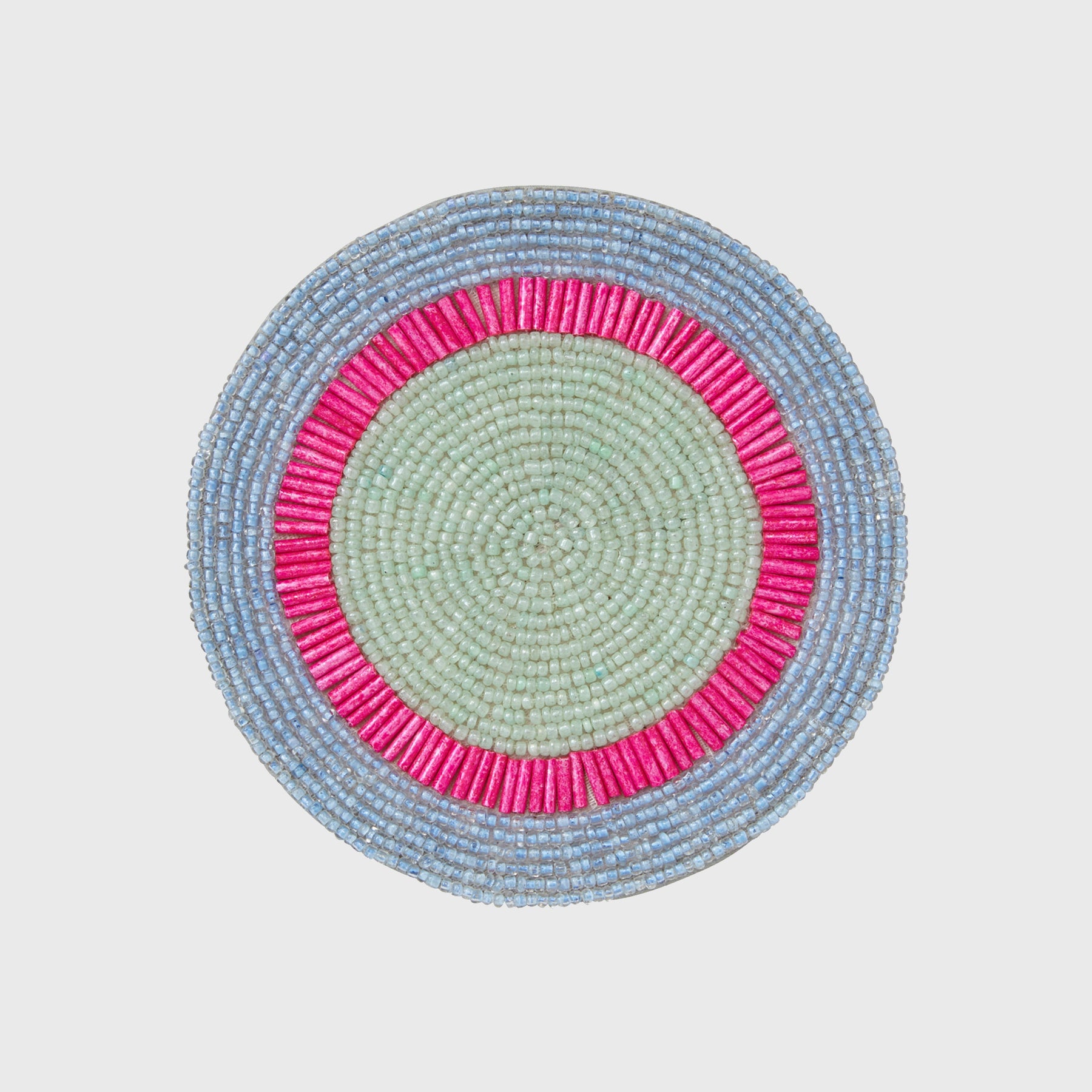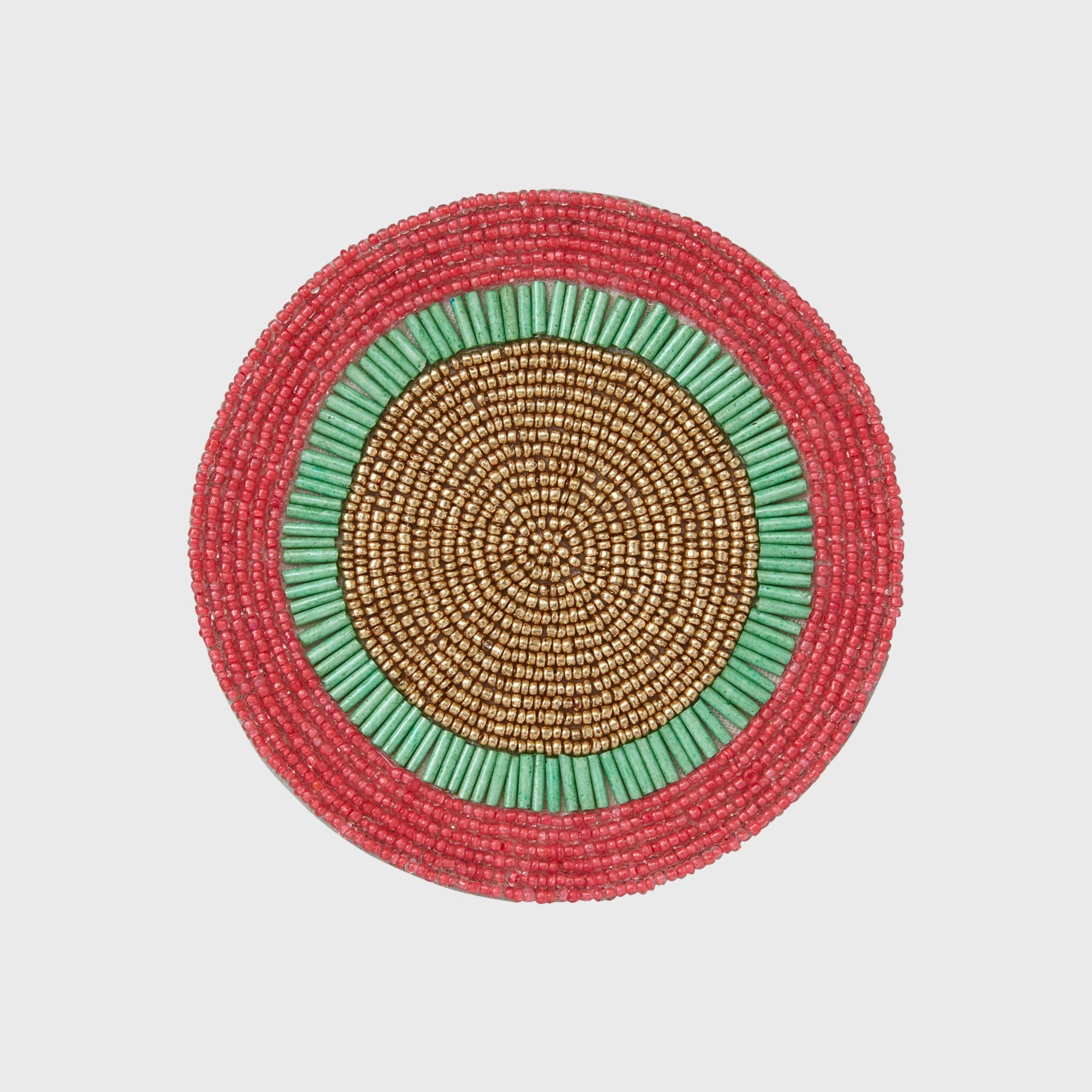 These beaded coasters feel so happy and bright! I designed them with enamel gem cocktail picks and wine charms in mind... such a wonderful set for your bar! Poppy and modern - we love these coasters all the way!