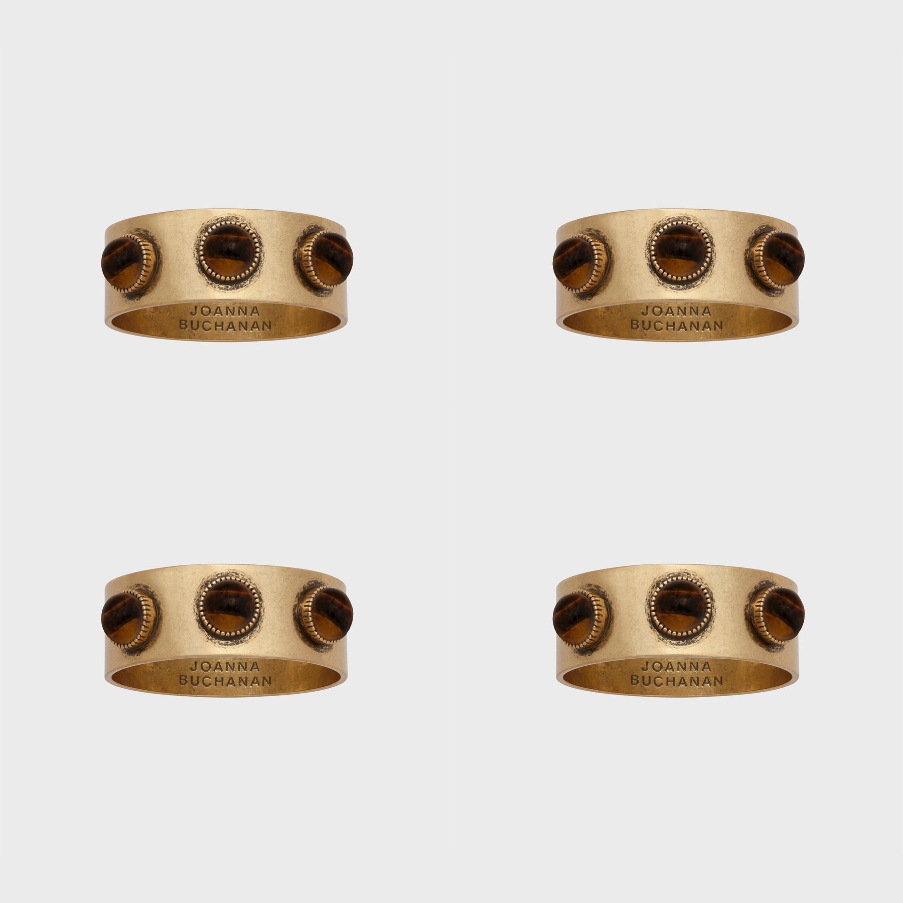 These brass napkin rings with real tigers eye stones are so pretty and polished! With the antique gold finish and such rich tones they can be used with every type of tablescape, but I especially love the simplicity of these napkin rings with our more elaborately patterned placemats.
