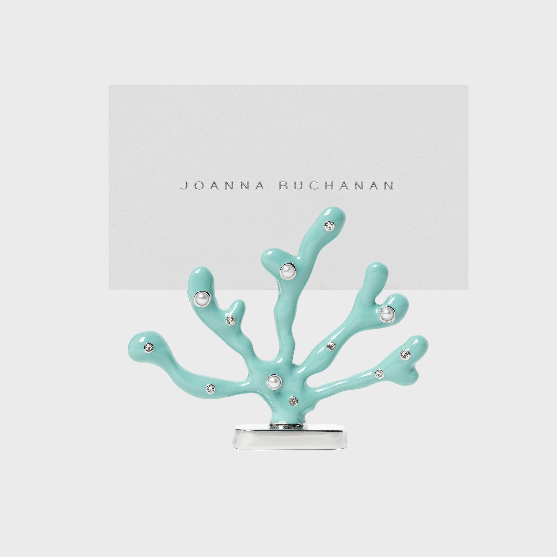 Turquoise is the colour of the summer sea... so use these gorgeous coral placecard holders for any and every event you have planned near the water! They are hand-enameled and then inlaid with gems. And just as beautiful on the back. Much bigger than previous placecard holders I have designed... pure drama!