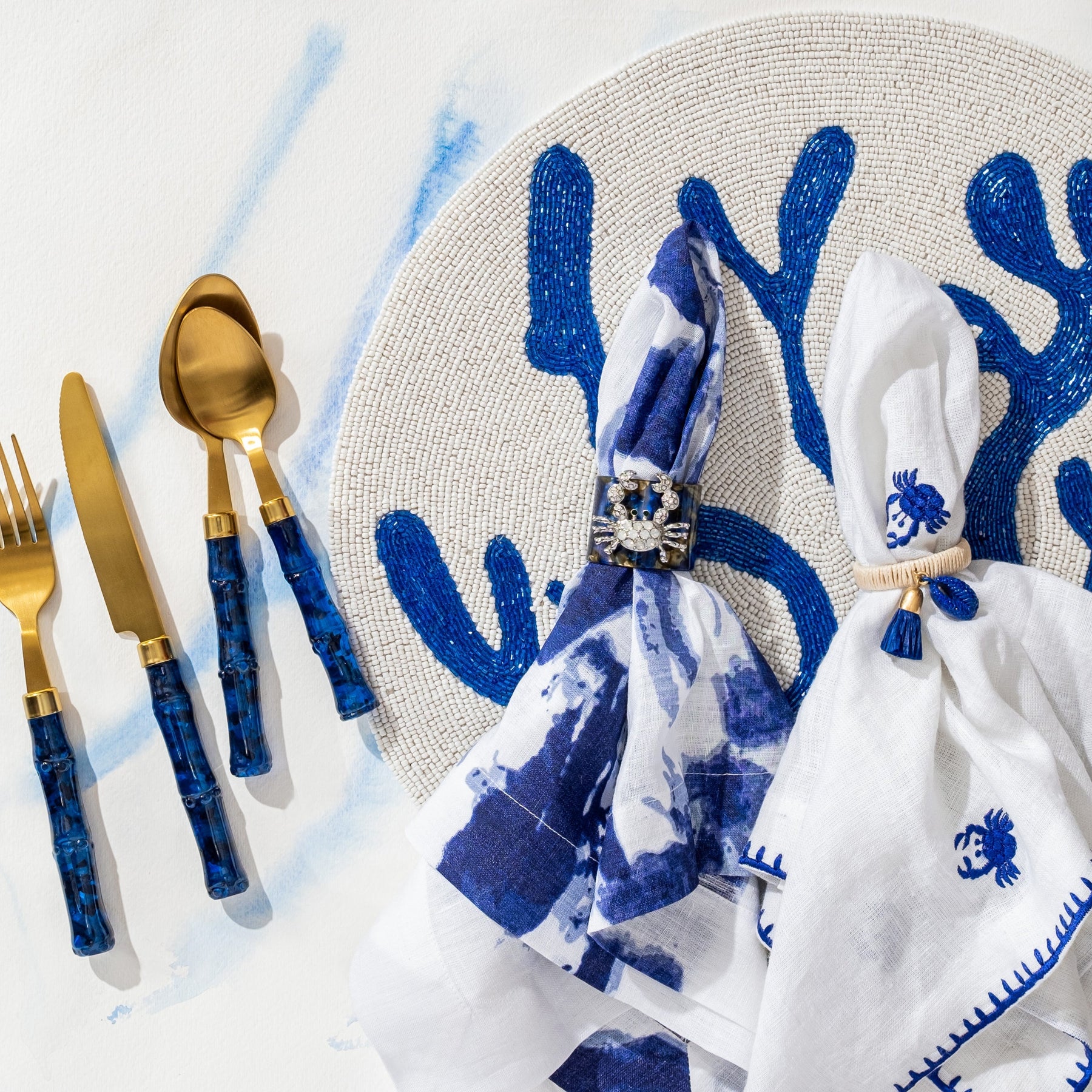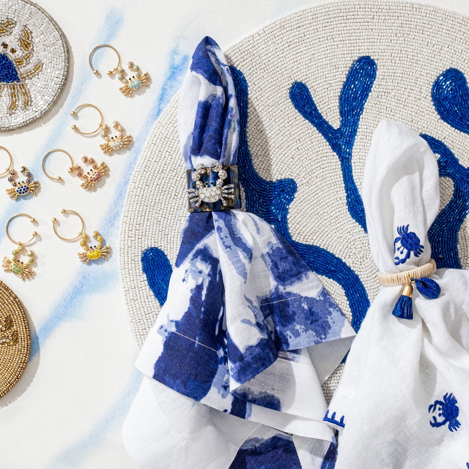 I couldn't love these embroidered crab dinner napkins any more! Building on the love of our crab tabletop pieces, we had to add in a napkin! These bold little critters are so whimsical on your coastal tablescape. The edge detailing is also so perfect to frame the embroidered crab icons. A little bit beach, a little bit preppy and a whole lot of fun!