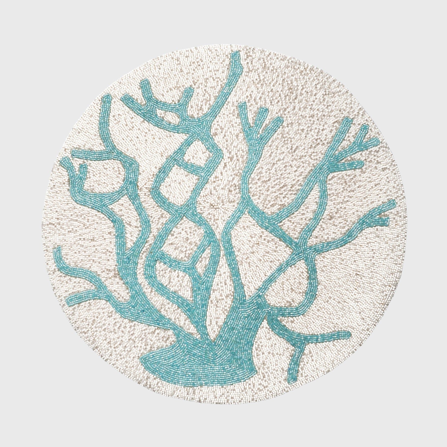 I was so excited to design this group of coral placemats. had Monaco in mind (land and sea!) and am thrilled with the way they turned out. A shimmering white ground and a delicate turquoise coral pattern (drawn by me!) is so elegant and timeless. Paired with our coral accessories, you can so easily set the ultimately chic table!
