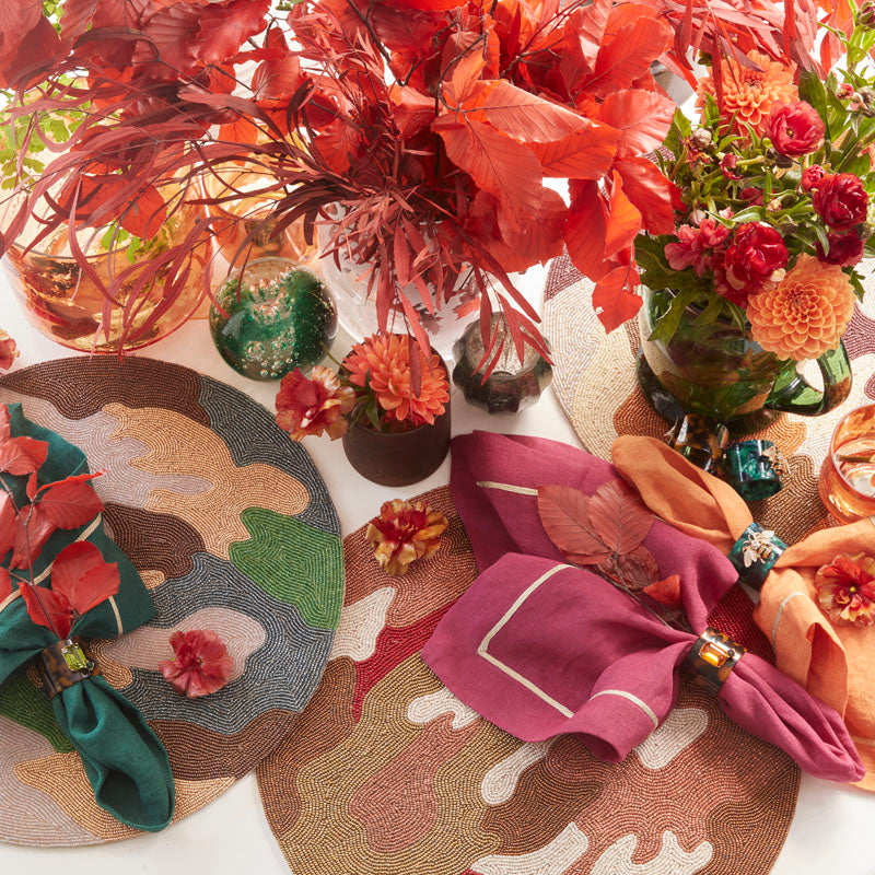 The only napkin you need for the Fall. The perfect autumnal shade of pumpkin. This is so beautiful with our camouflage placemats and tortoiseshell napkin rings- we are so excited to expand our colour offering in this best selling napkin