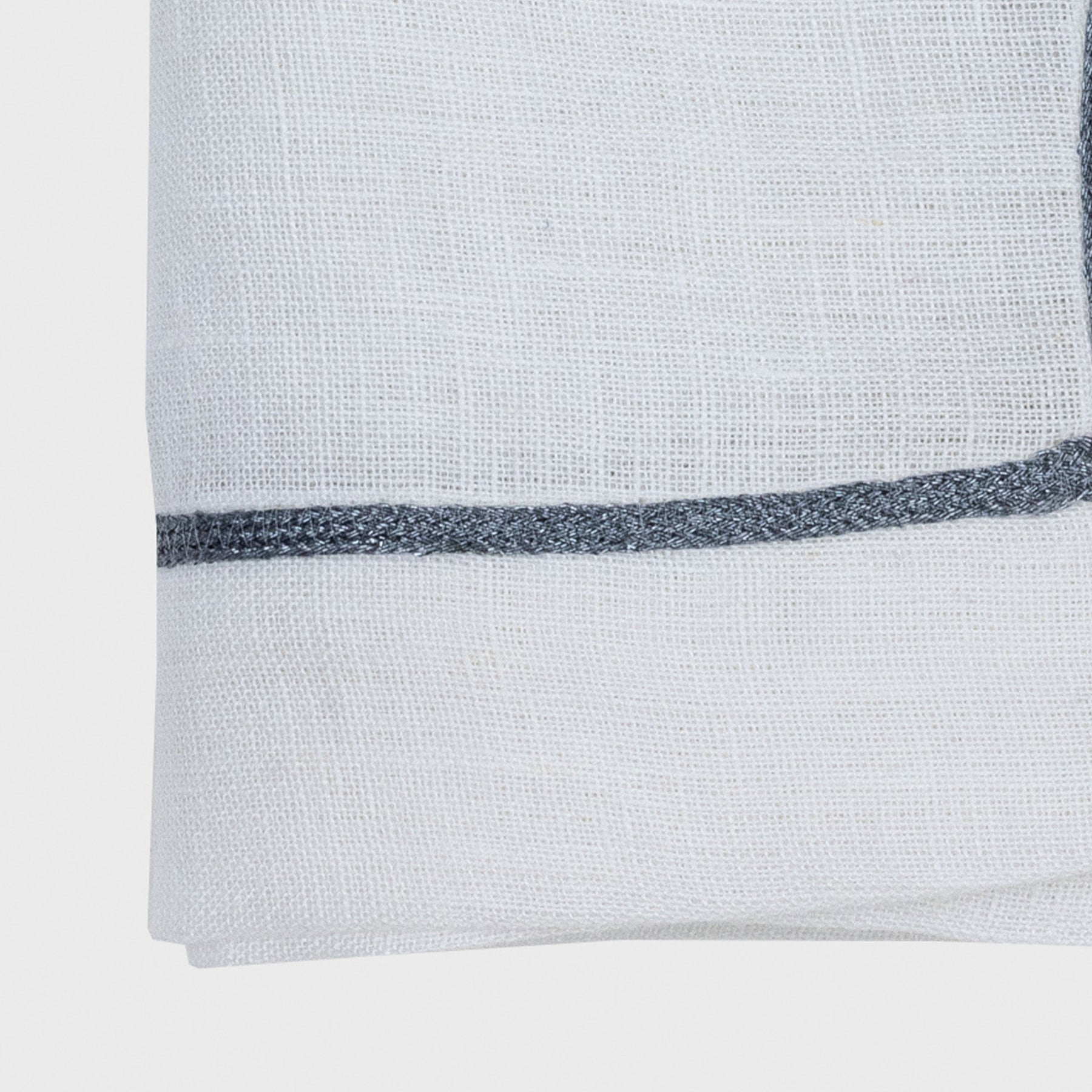 Never a boring white napkin! Really feeling silver tones right now so this linen dinner napkin features an intricate gunmetal metallic trim that will give an extra dose of glamour to any tablescape! So versatile and yet super special at the same time!