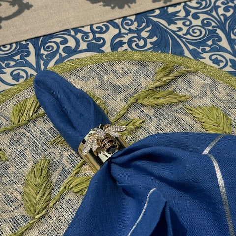 This is such a versatile blue napkin! It can tone with almost any blue you may have... and looks fabulous with the silverflash! Casual chic and yet super special at the same time- I love it for Hanukkah tables!