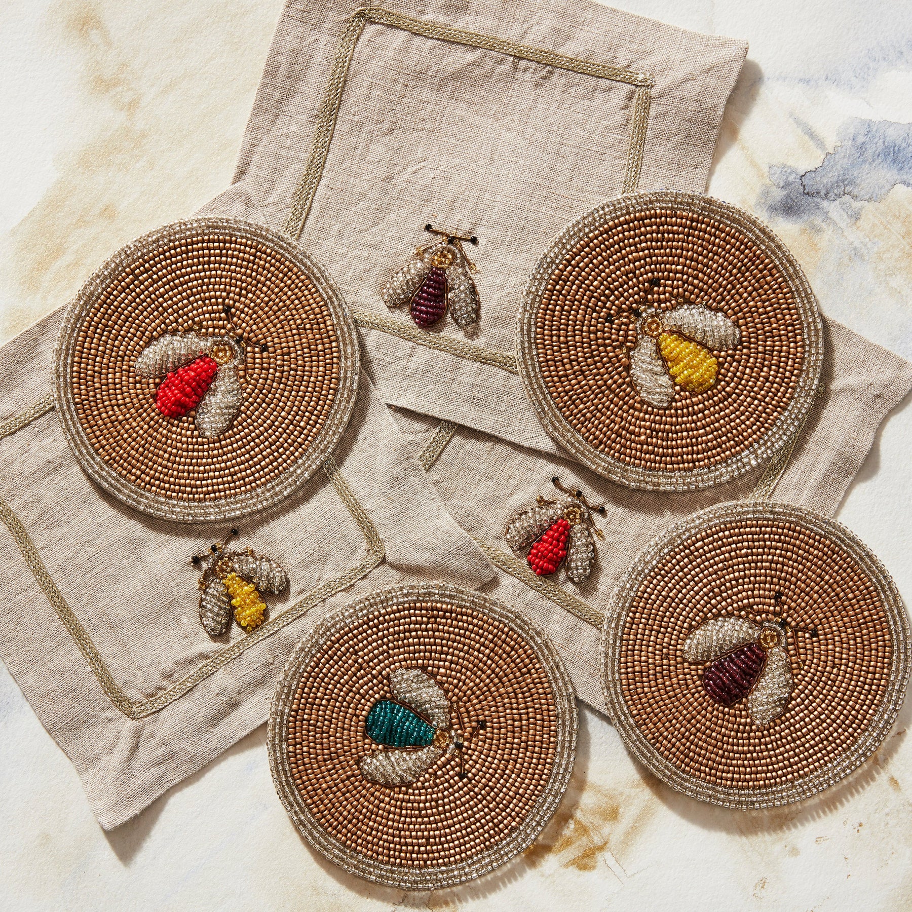 Sparkly bees in rainbow brights perfect for adding a colourful pop to your party table or barcart. These hand beaded coasters are so detailed ... you won't want to put your drink down! Pair these with one of our candy coloured Sparkle Bee hanging ornaments for a joyful Christmas hostess gift!