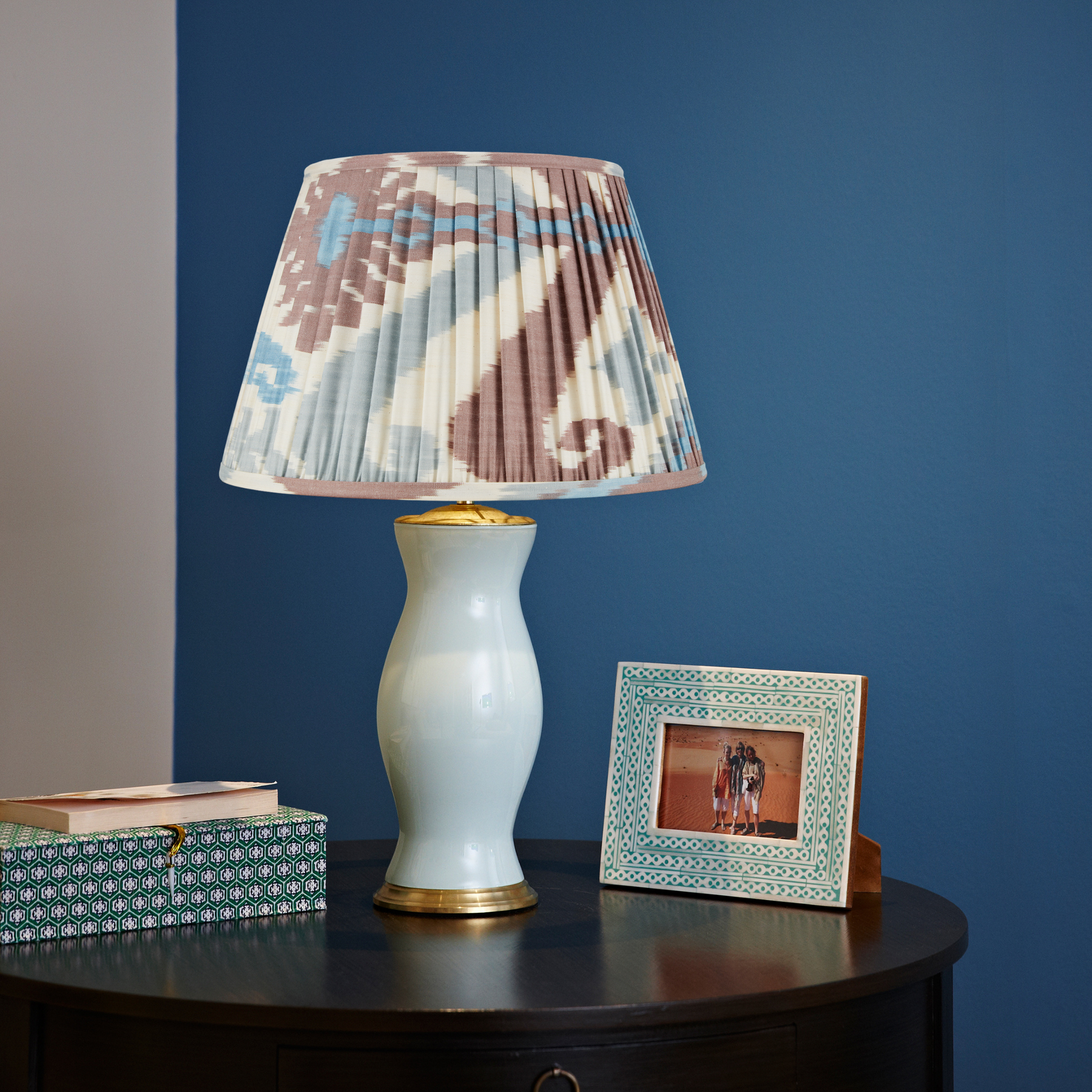 Blue and Terracotta Silk Ikat Lampshade