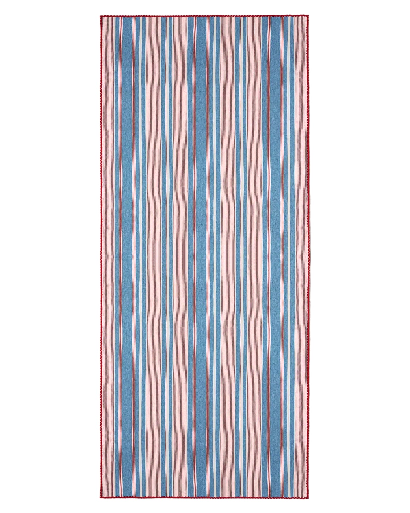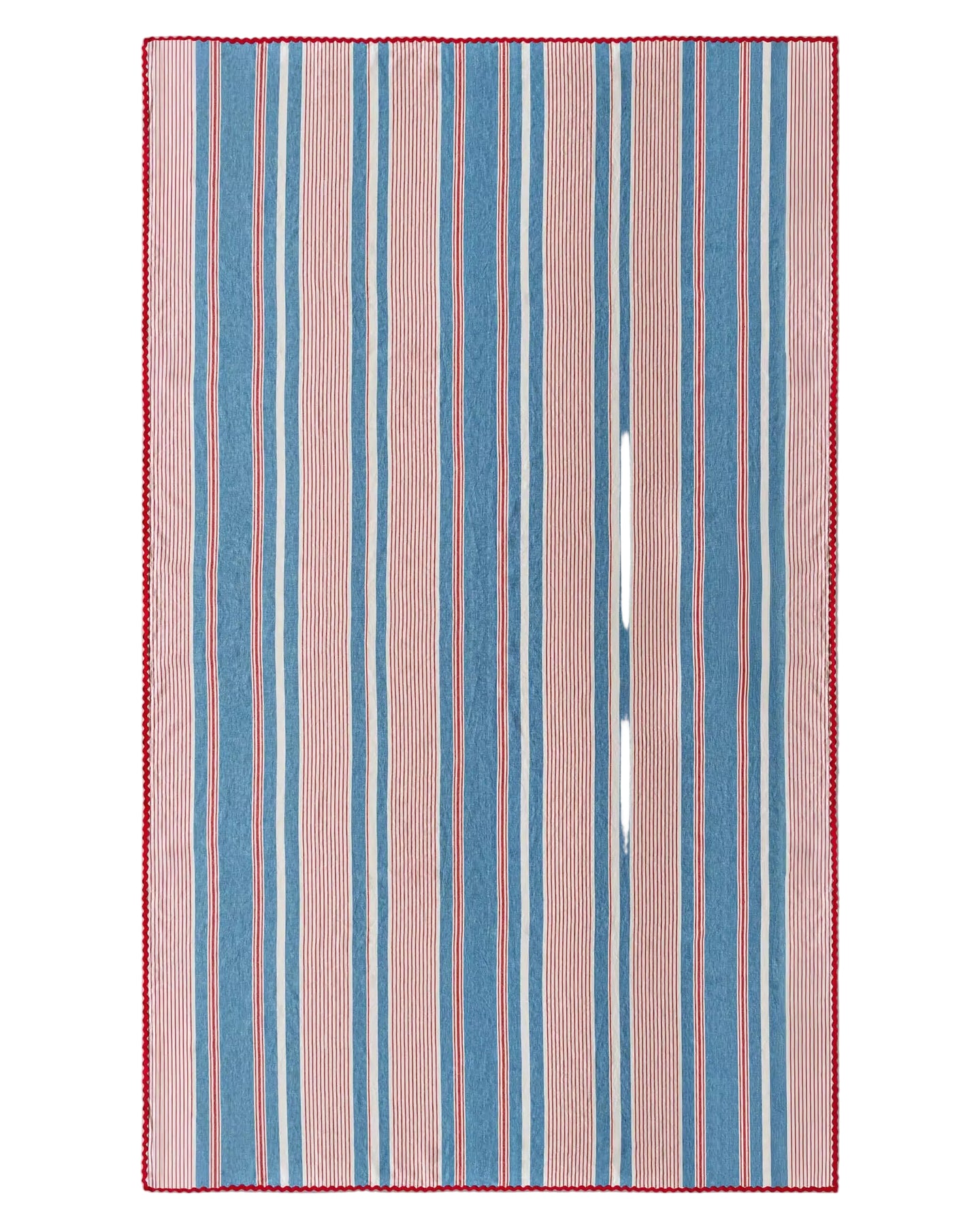 Drawing inspiration from heritage textile traditions, the Nochrich Tablecloth brings refined elegance to your dining experience. Crafted from pure linen and gently stonewashed to achieve a luxuriously soft hand, it showcases timeless striped detailing that honours classical weaving techniques. Finished with a striking red rickrack lace border, this piece combines understated sophistication with distinctive character, elevating any table setting with quiet confidence.