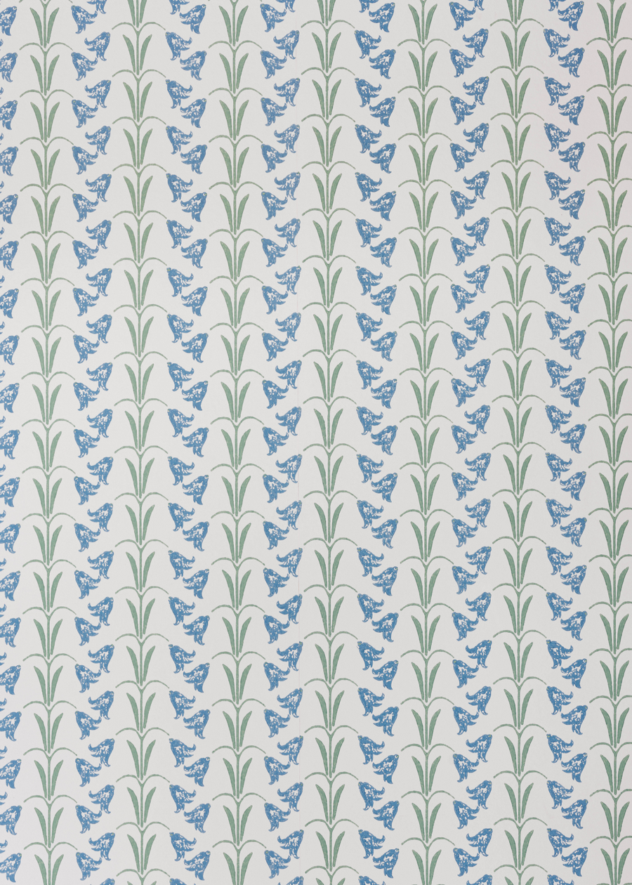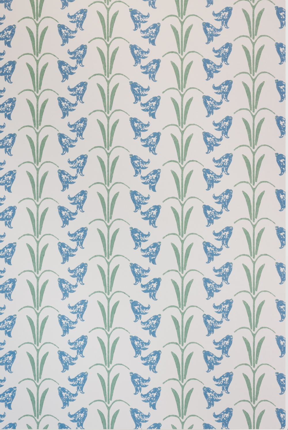 A celebration of a favourite Spring bloom, this Bluebells Wallpaper features stripes of stylised bluebells printed using surface rollers for a painterly feel and a charming hand-blocked finish.