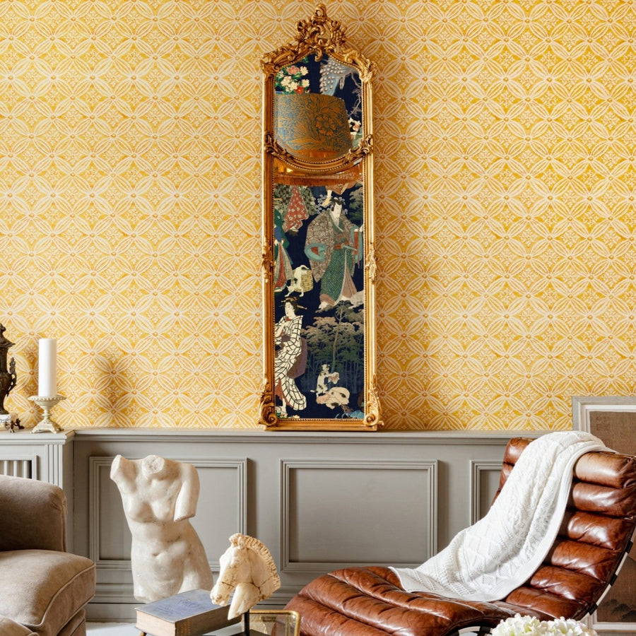 Inspired by the colours of natural dyes, the Kalamkari wallpaper echoes the art of block painting, a technique native to Persia and India. Each simple pattern has a humble, handmade feel with rounded shapes and gentle floral detailing that could almost become a plain when used across large areas. A quietly decorative print that takes on a distinctly eastern personality the closer you examine it.