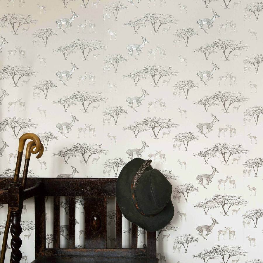 Nakuru Flamingo Wallpaper in Taupe by Juliet Traveres