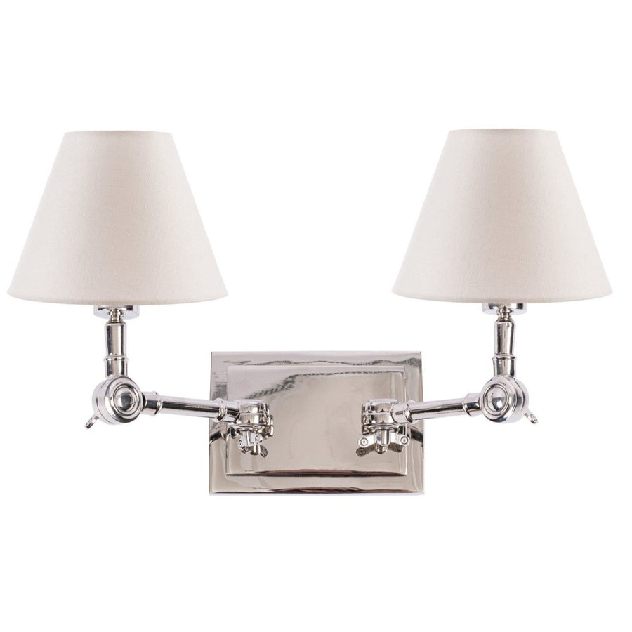 The Joyce double arm Sconce is an adjustable fixture that brings a classic design to modern day. Built from solid nickel with a polished finish, the sconce comes with two E14 lamp holders