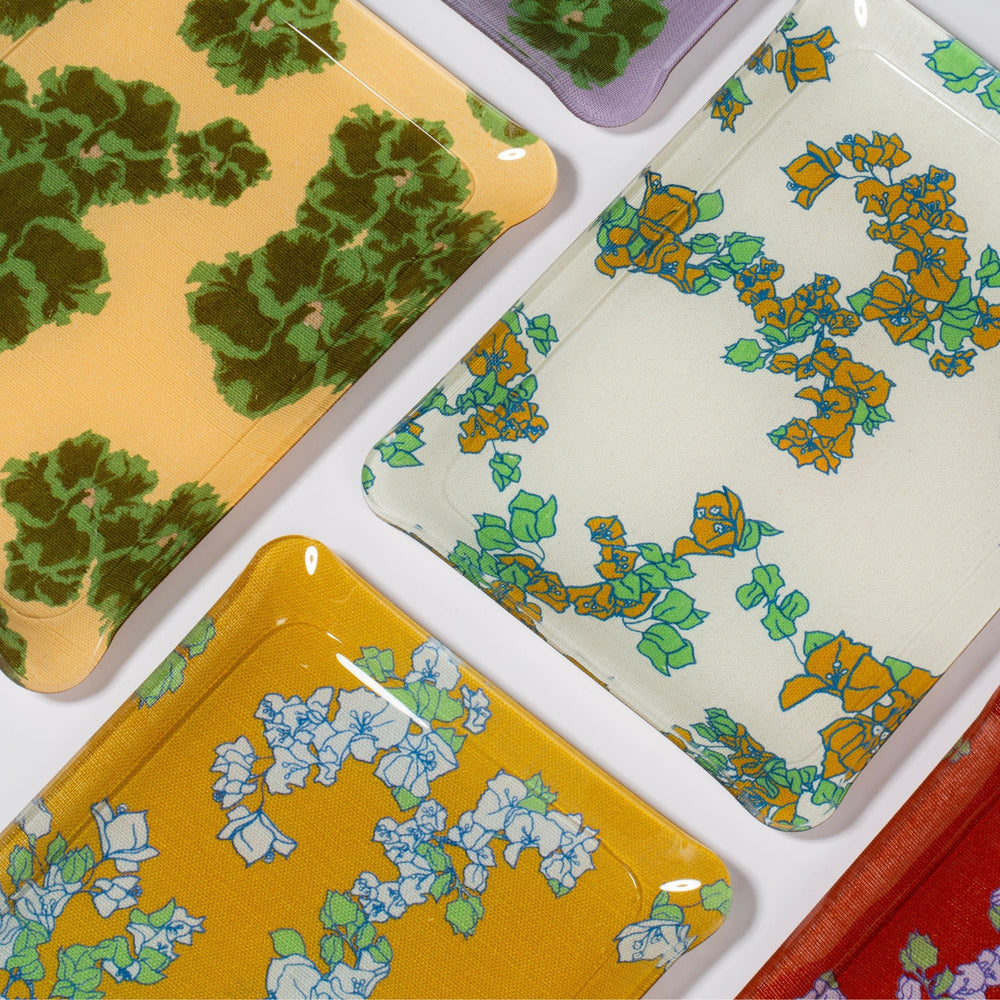 A very decorative acrylic tray made in France with Dar Leone's own range of textiles. Available in three tones of Coral Orange, Saffron Yellow and Oyster White.