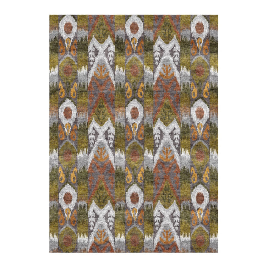 This fabulous Ikat patterned rug is a glamorous, decorative piece in rich yet perfectly balanced shades of grey, sage and spice colours. Inspired by the ancient techniques of exquisite handwoven Ikat textiles produced in India and Indonesia in particular, this luxurious design has been hand knotted using lustrous bamboo yarns. Available in 3 sizes.